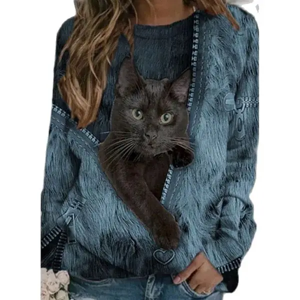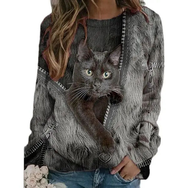 Be the first to review “2023 Autumn Women Clothing S-5XL Fashion Print T-Shirt Zipper Cartoon Cat Printed Casual Loose Shirt Long Sleeve Round Neck Tops”