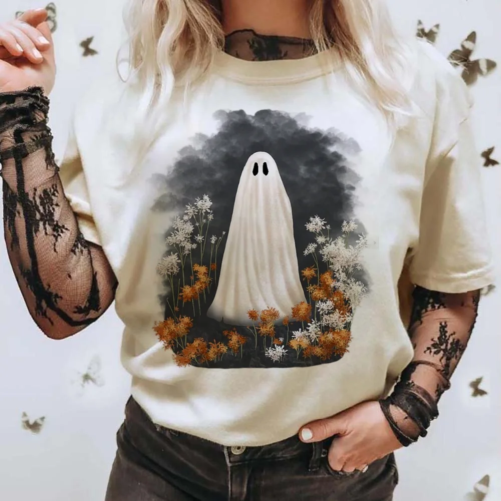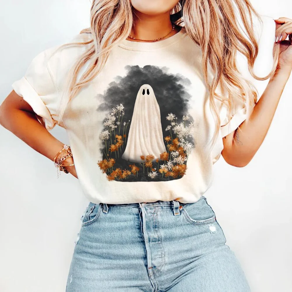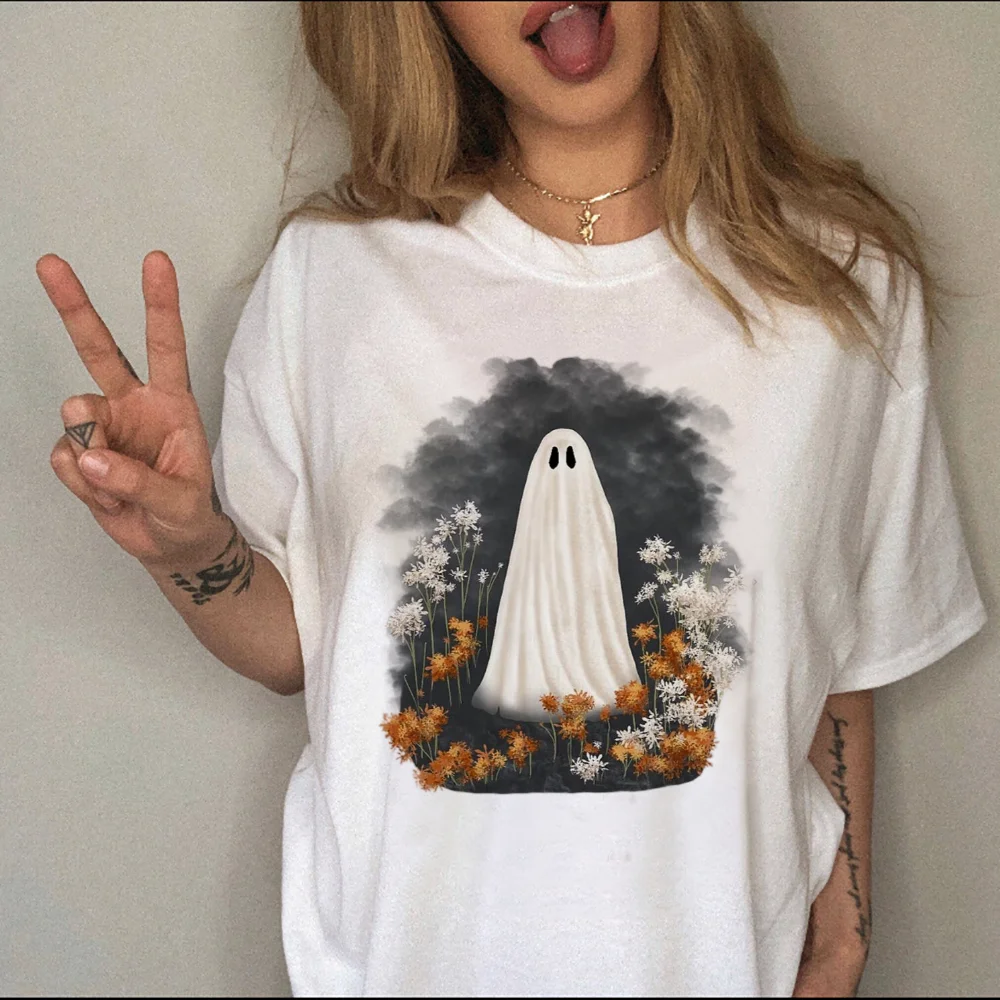 Women’s Clothing Pattern Fashionable Printed T-Shirt Short Sleeved Women’s Halloween Trend Cute 90s Women’s Shirt Loose T-Shirt